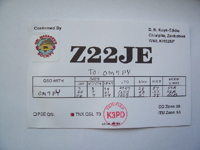 MY first 100 DXCC QSL card